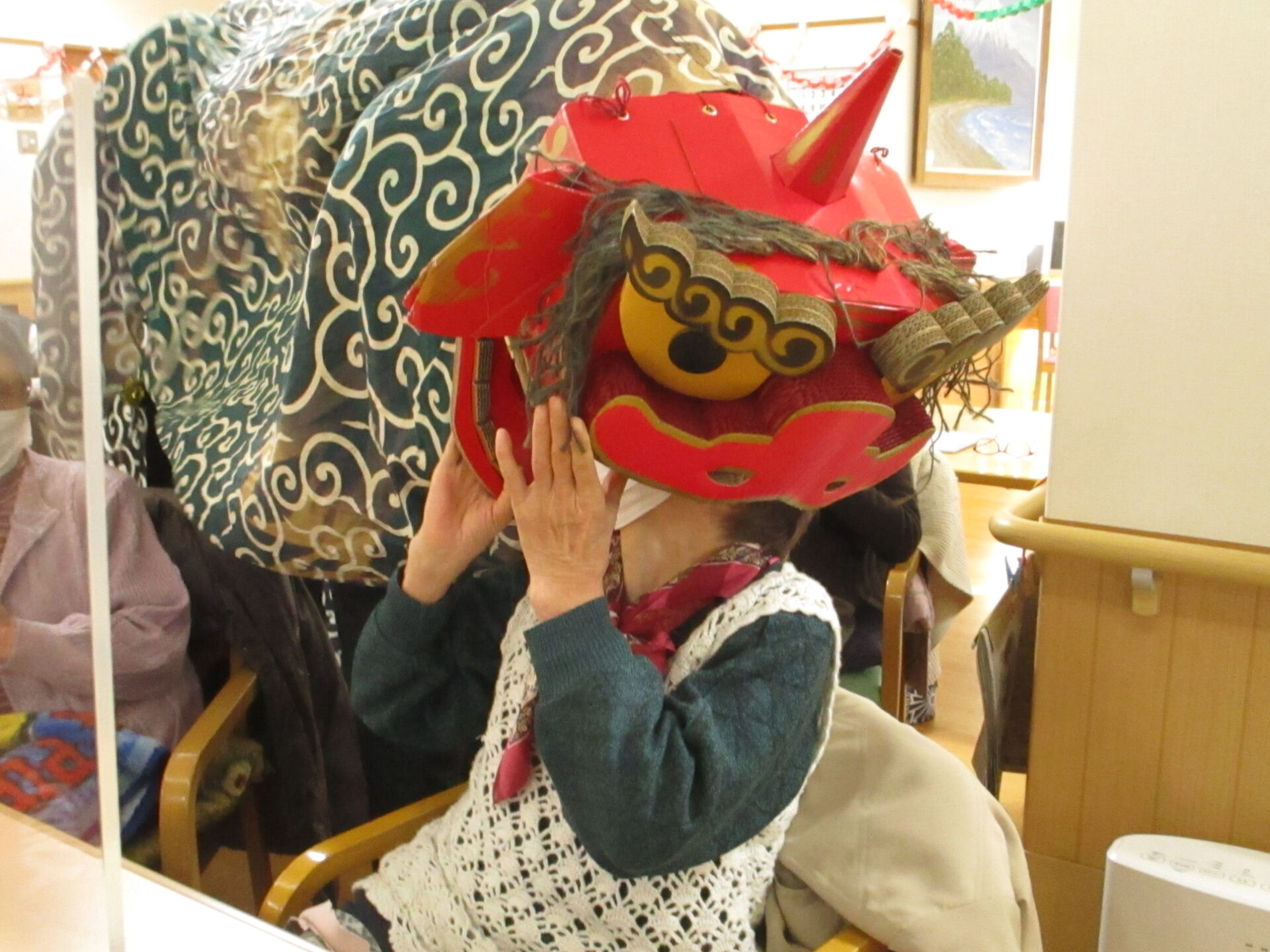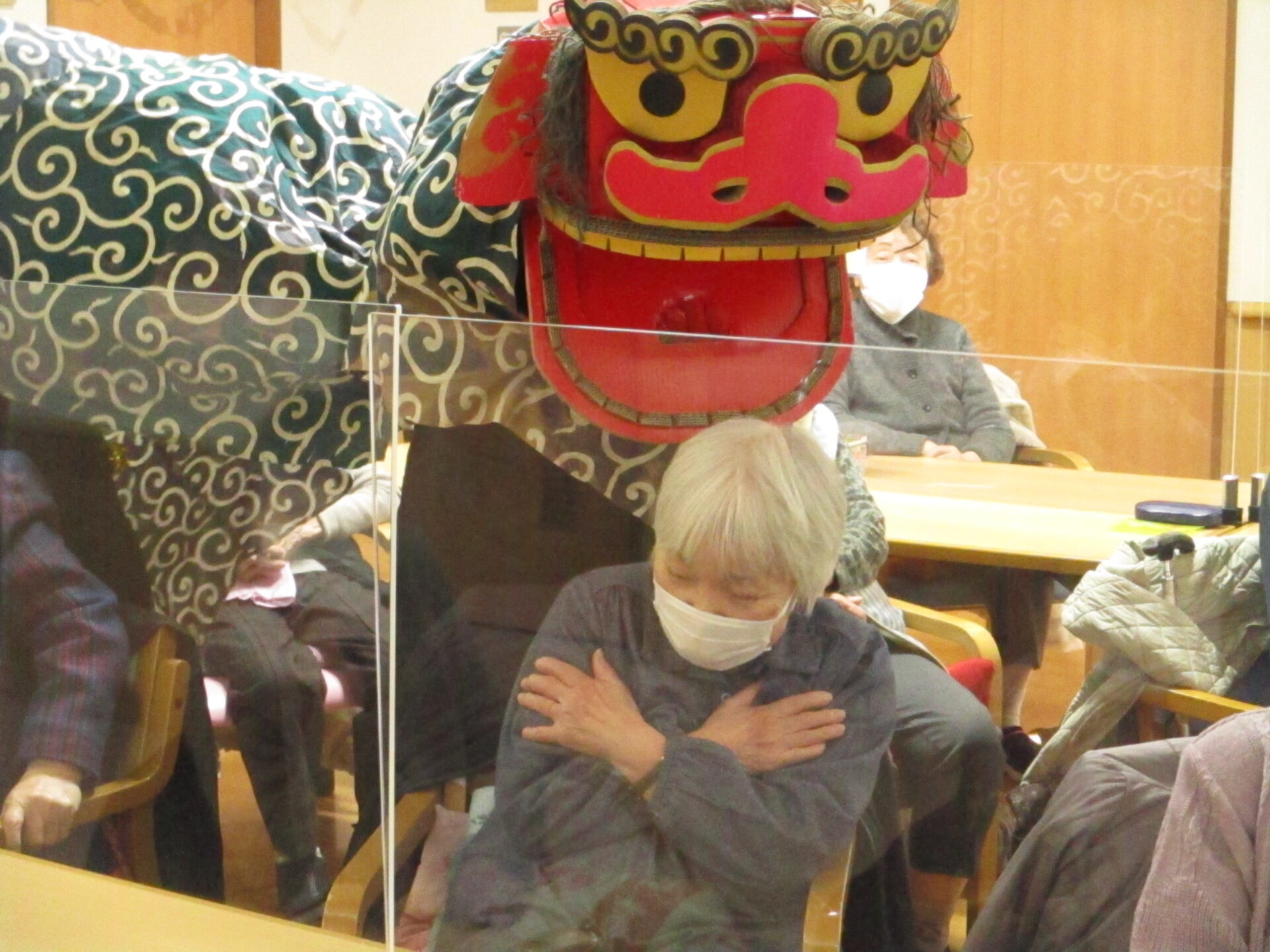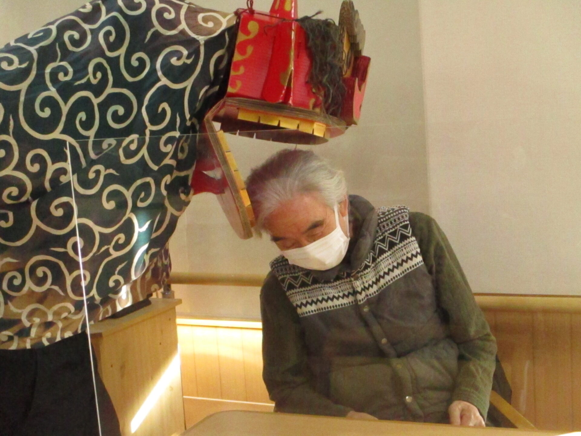 獅子舞が人の頭を噛むことによって、その人についた邪気を食べてくれると考えられており、悪いことから守ってくれ、後利益があると考えられているそうです☺