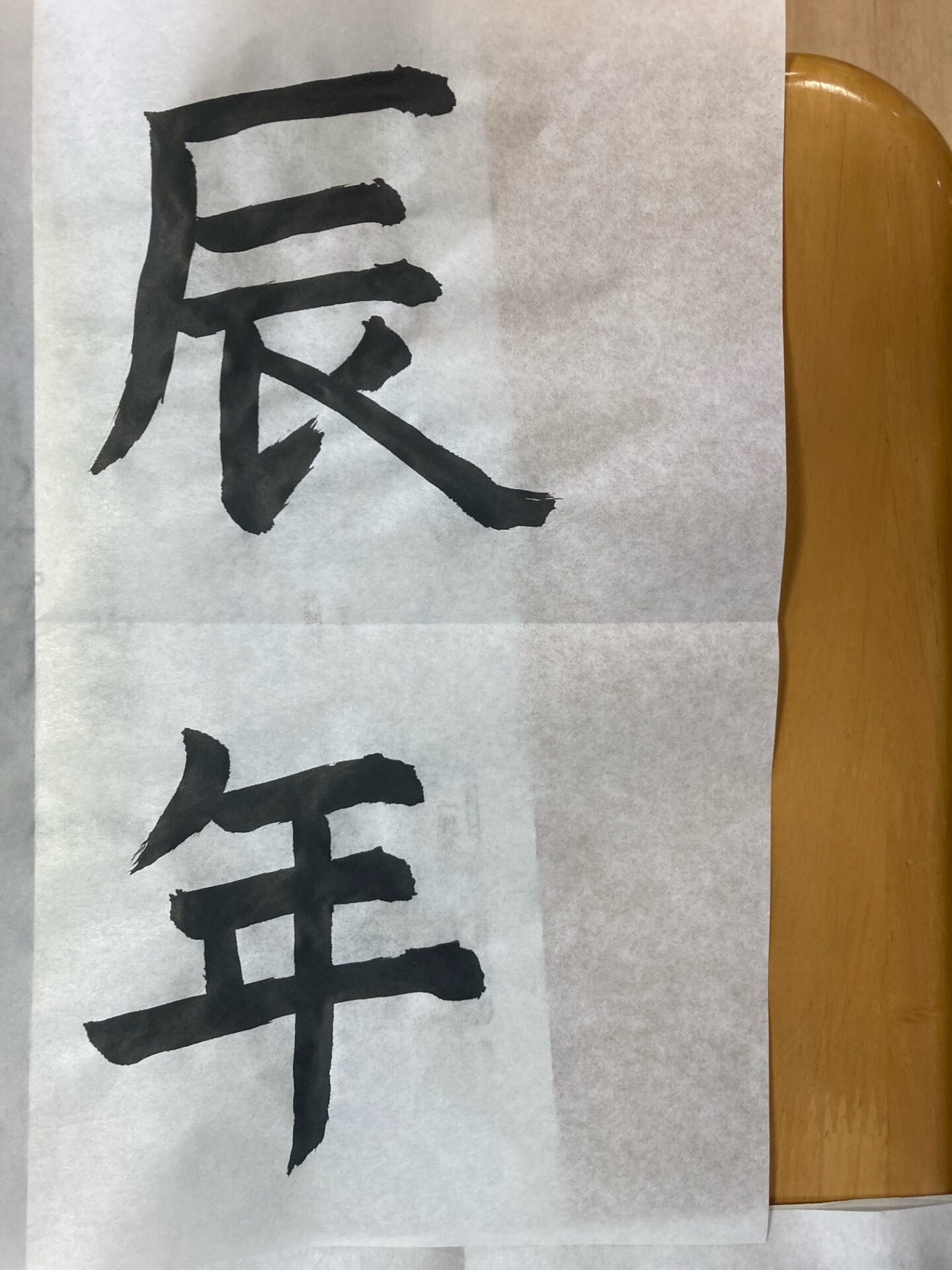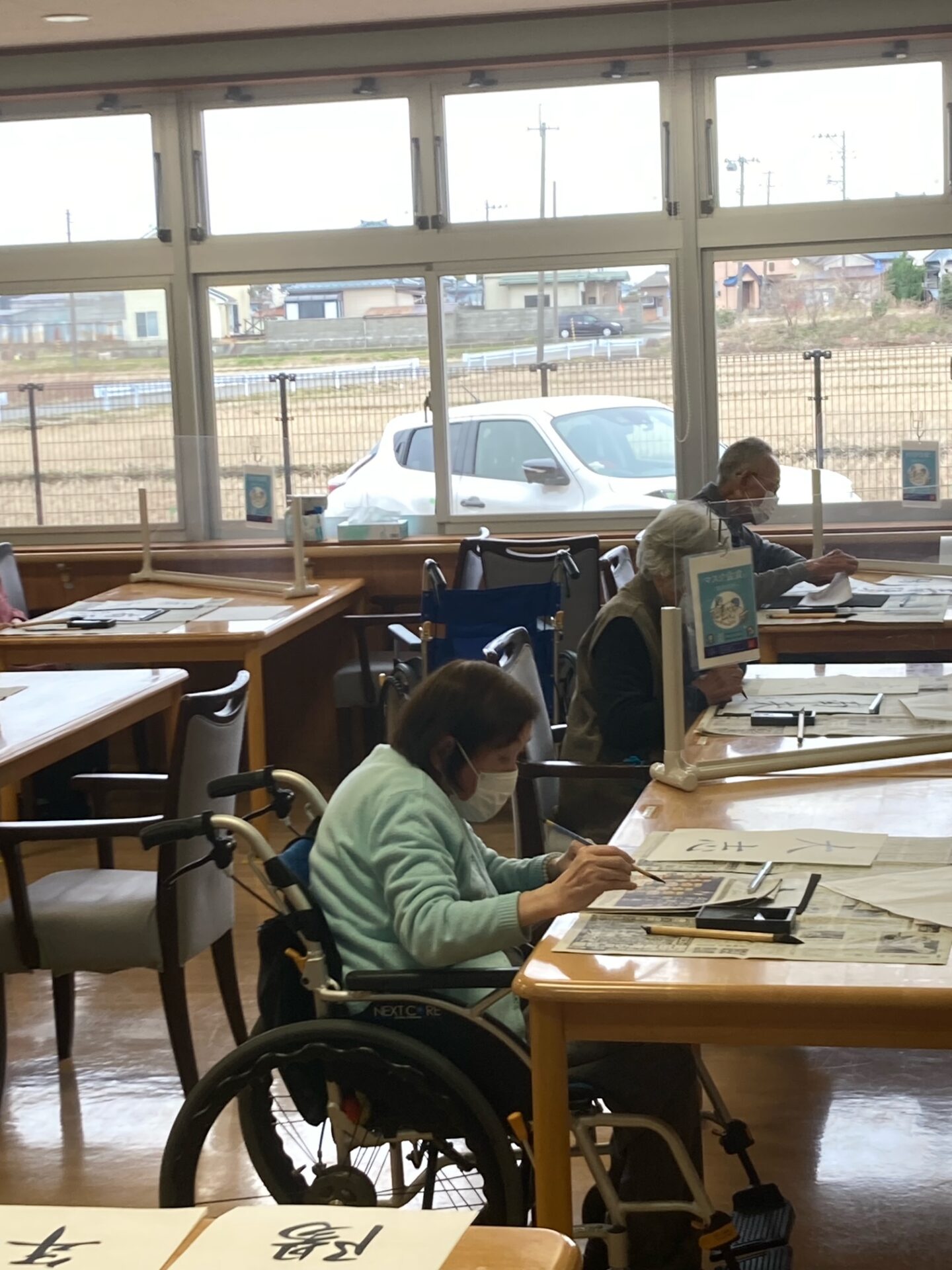 掛け軸の前で集中して書道に取り組まれました(‘ω’)