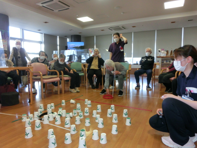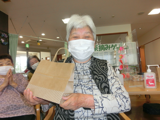 レクリエーションに、茶摘みゲームを行い…