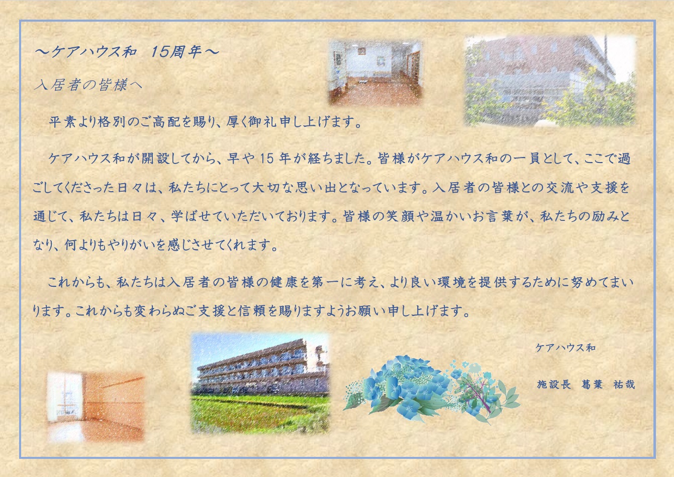 令和6年6月1日で、ケアハウス和は開設15周年を迎えることができました。