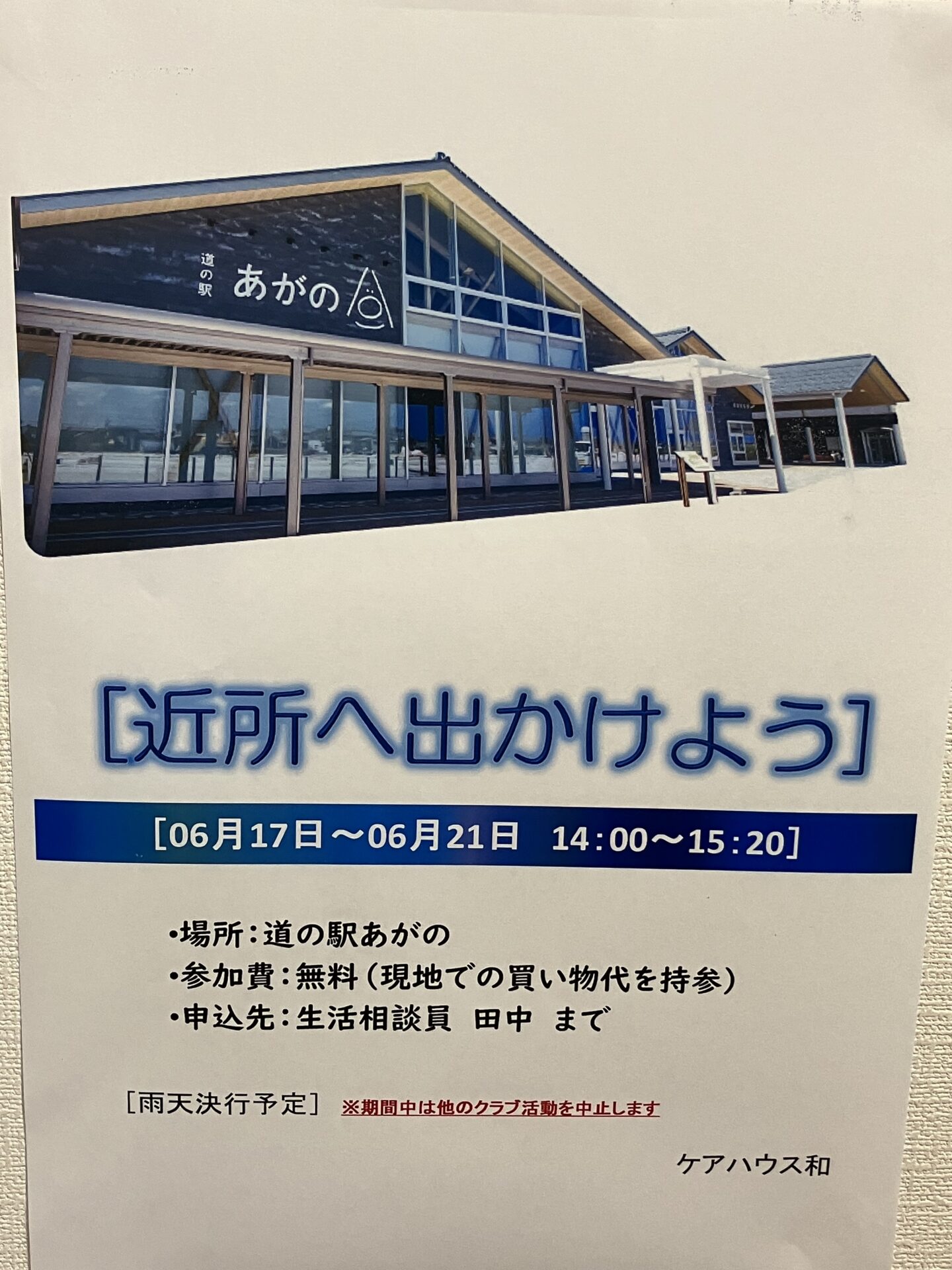 外出行事として、「道の駅あがの」さんへお出かけします(^^♪