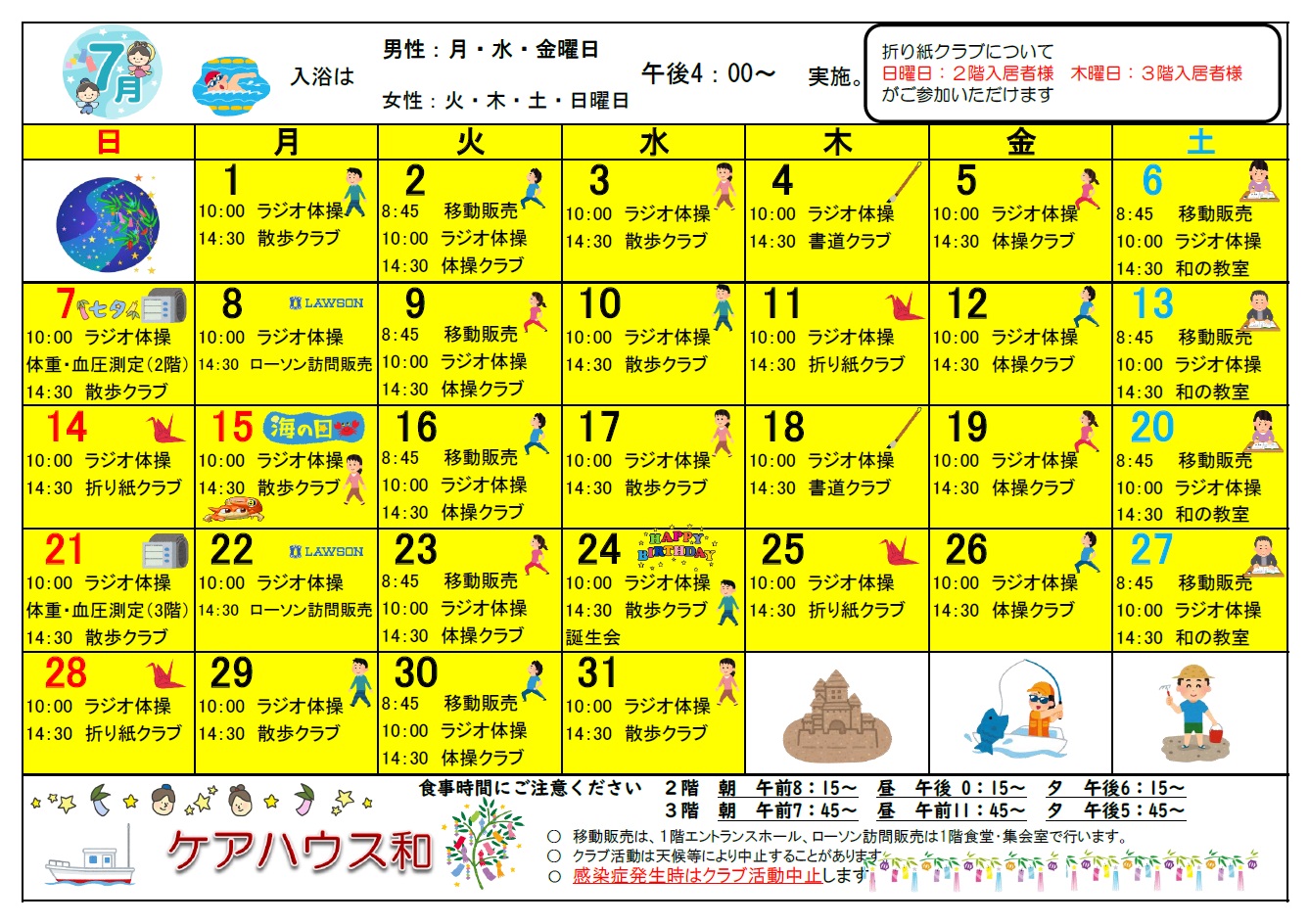 ケアハウス和 7月予定表を掲載します(*´▽`*)