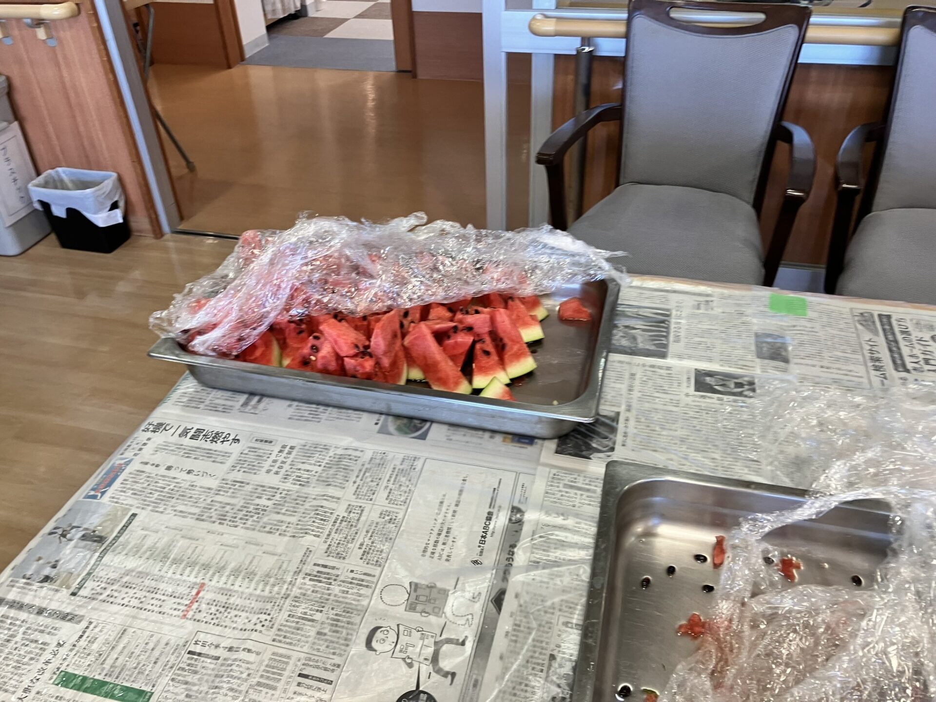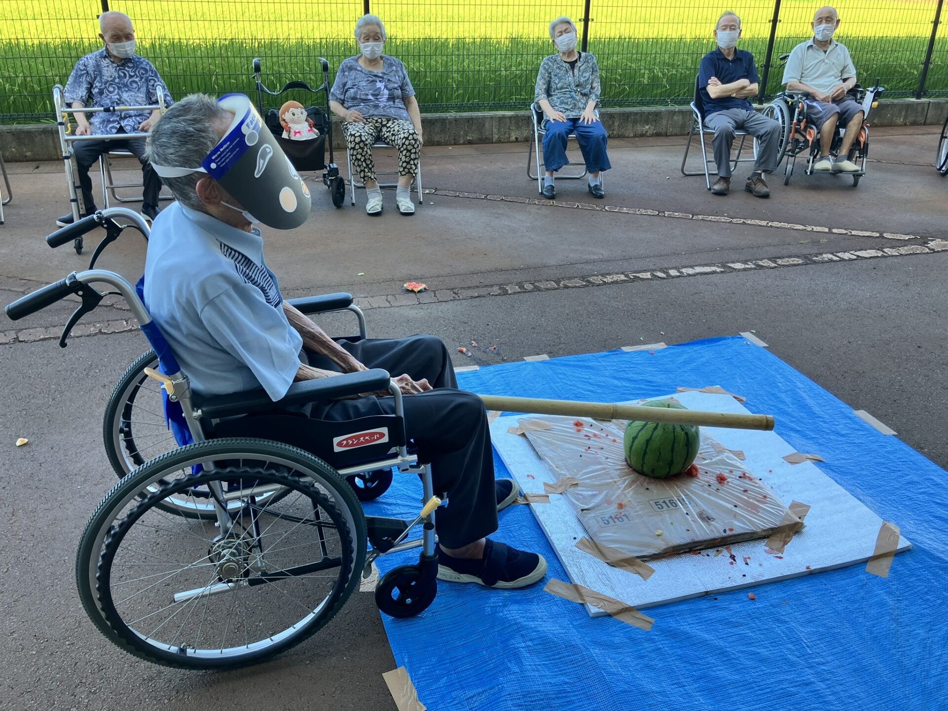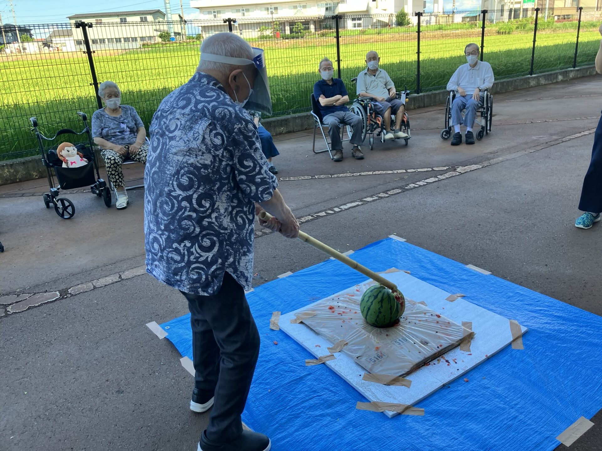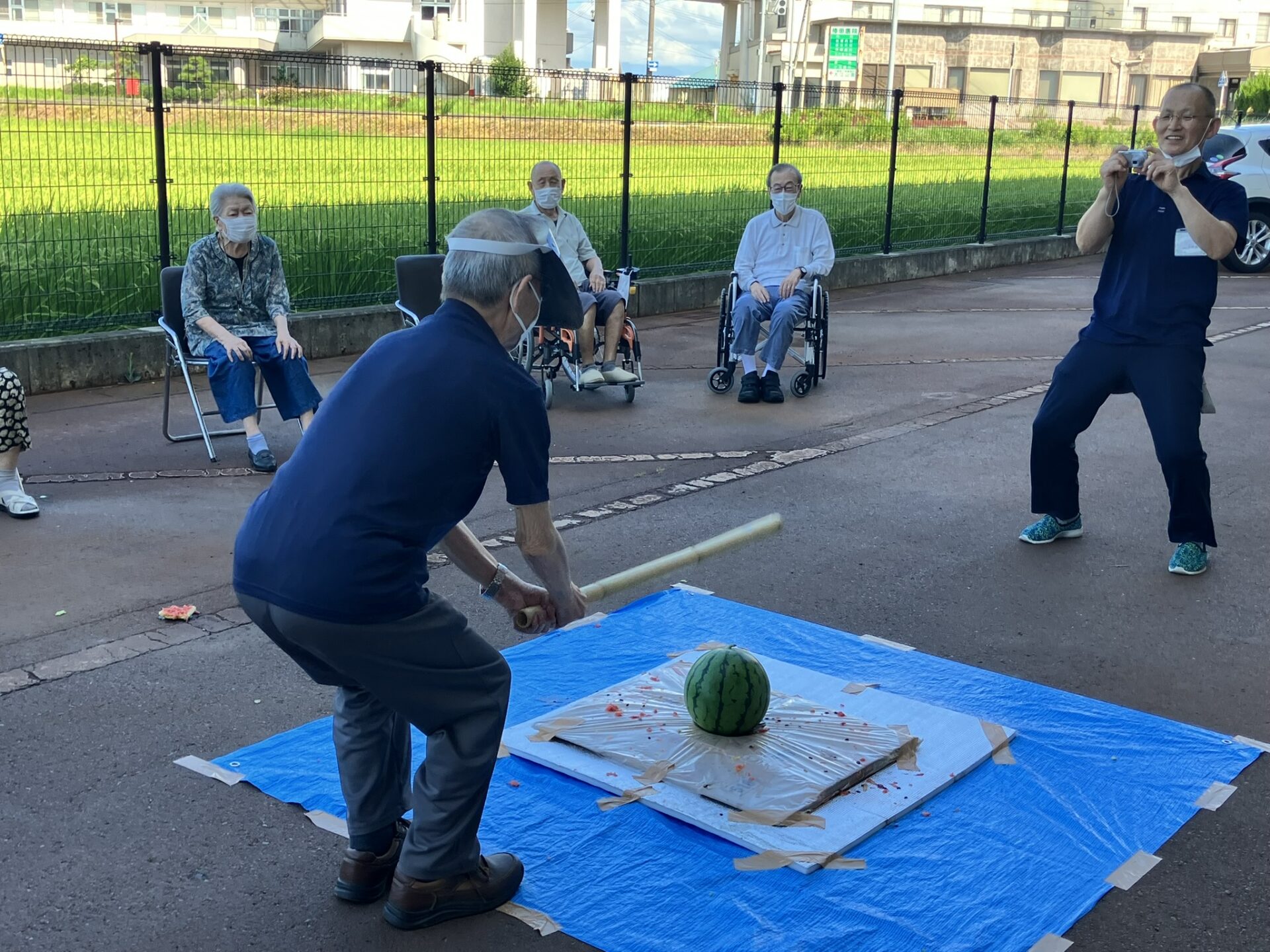 8/18 ケアハウス和で採れたスイカでスイカ割をしました(^^)