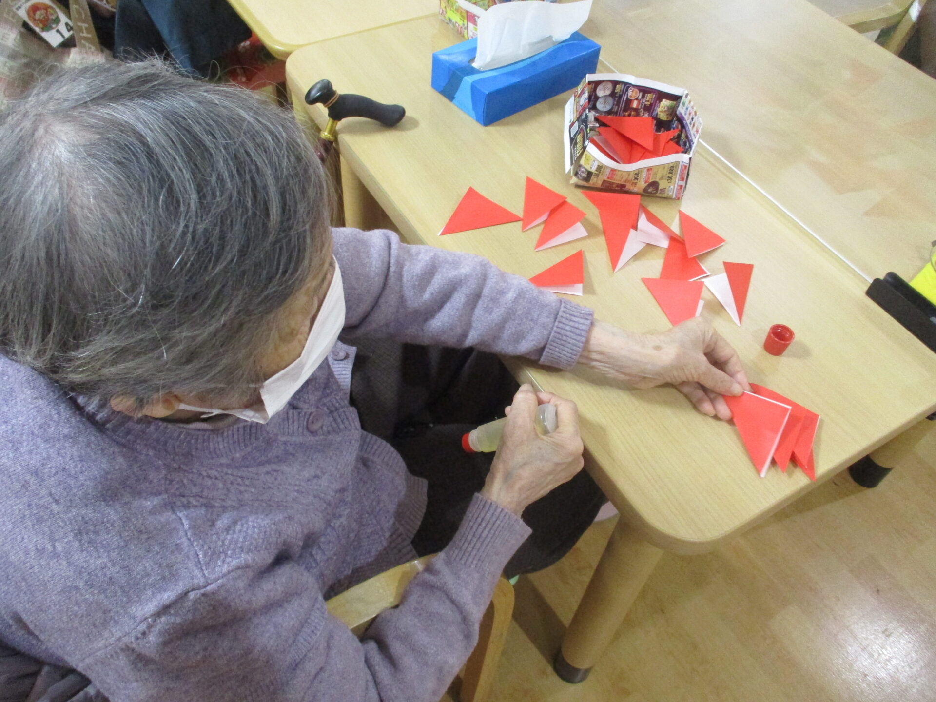 余暇時間に折り紙でリースづくり。