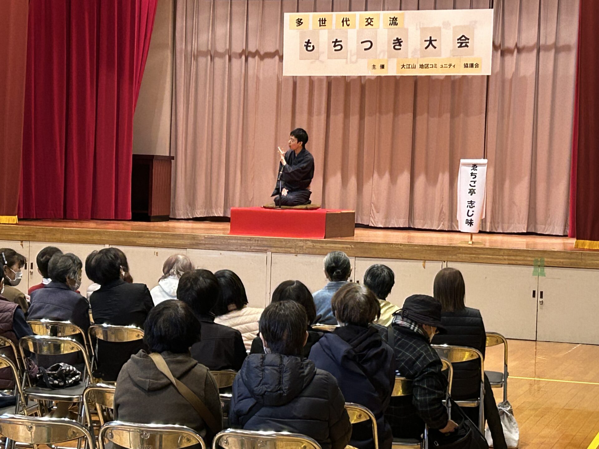 大江山農村環境改善センターにて、「落語で大笑い!もちつき大会」に参加しました。