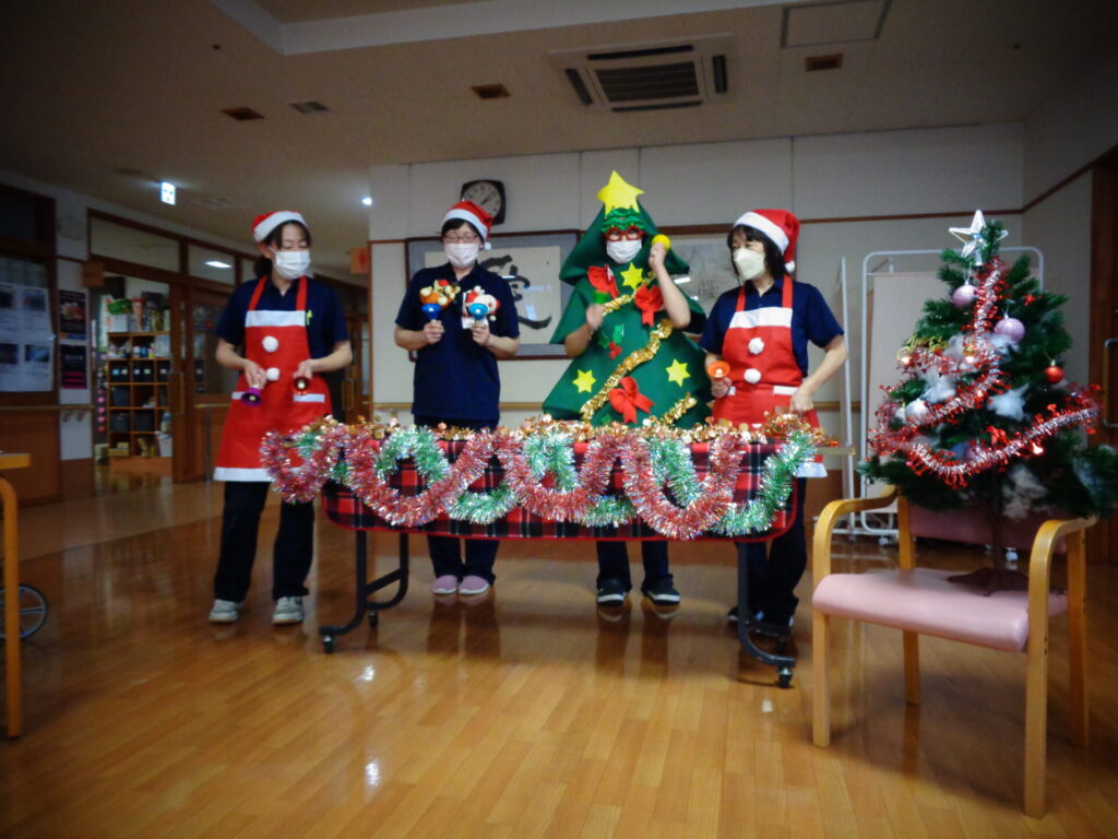 クリスマス会では職員のハンドベルの演奏を披露しました☺