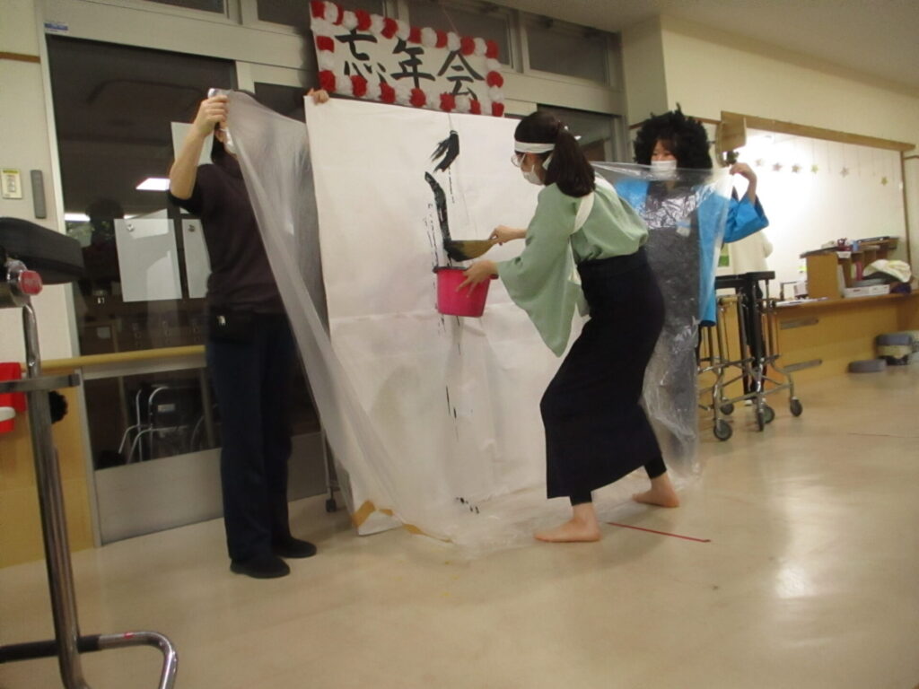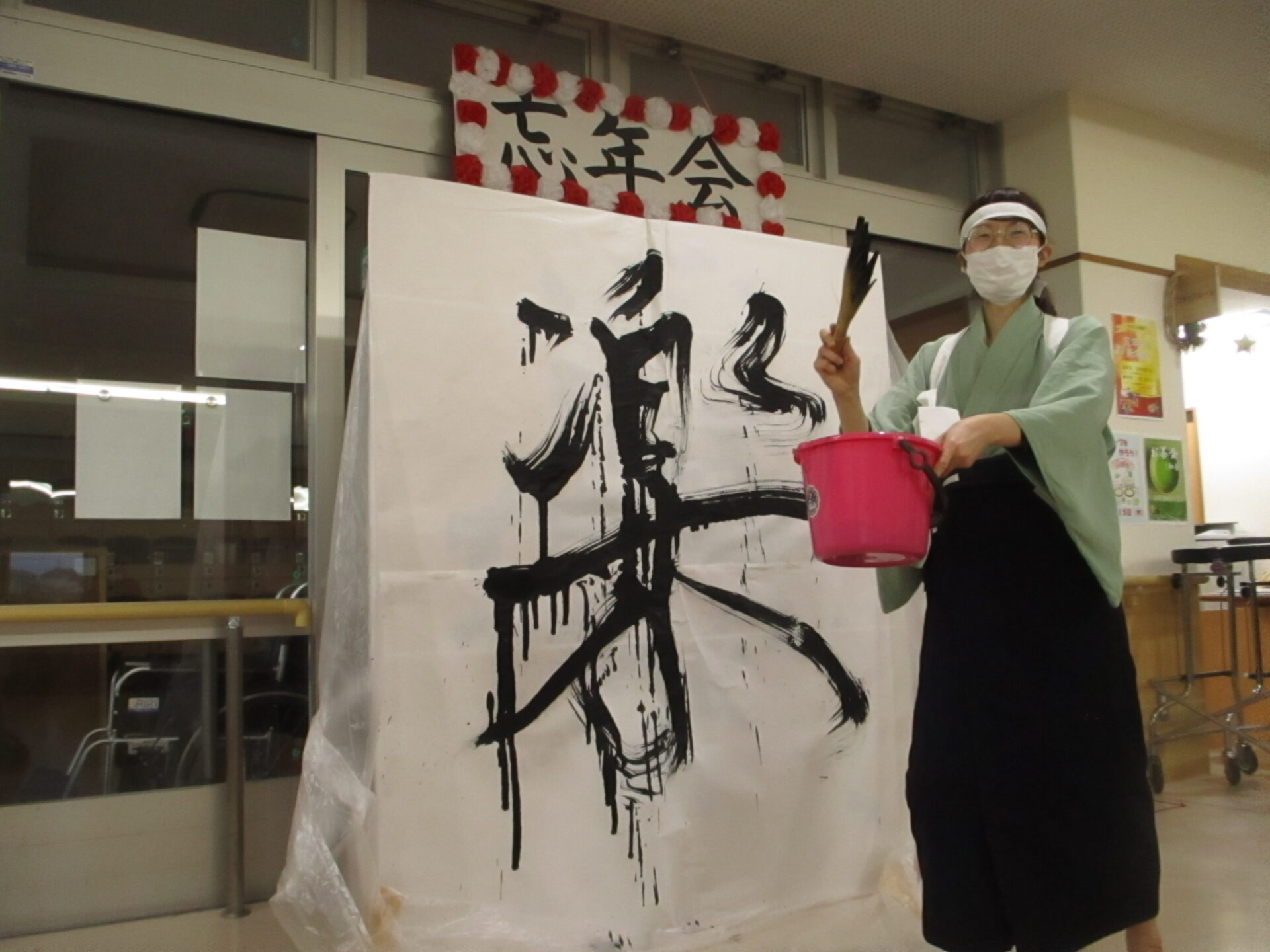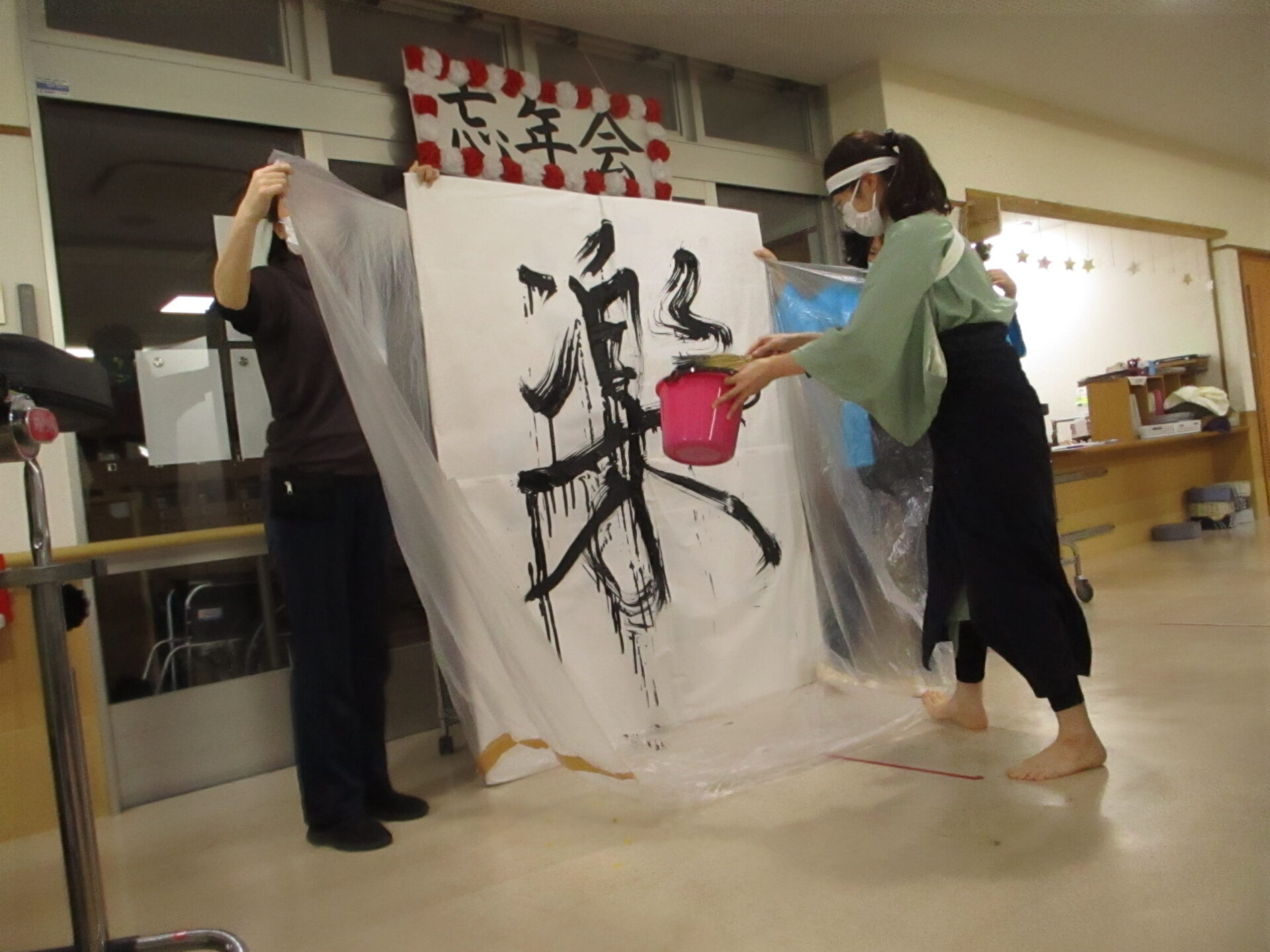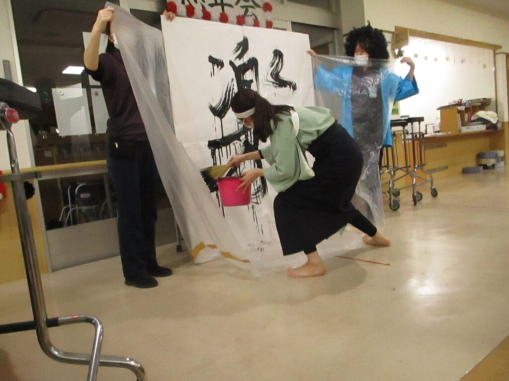 ほうき書道家によるパフォーマンスです。
