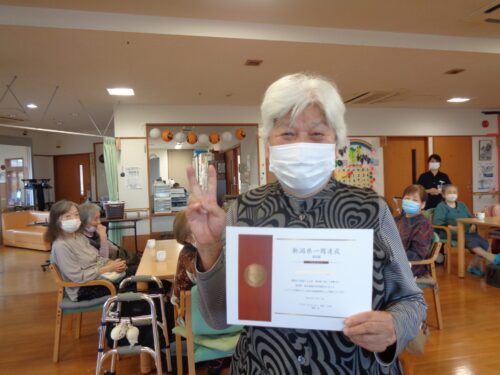 和の芸術の秋! 素敵な作品を作っていました☺ こちらでは合唱クラブを実施中☆ 手指のリハビリ! 新聞を長く手でちぎっていきます。 途中でちぎれないように慎重に。 こちらは歩行練習で実施しているスタンプラリー […]
