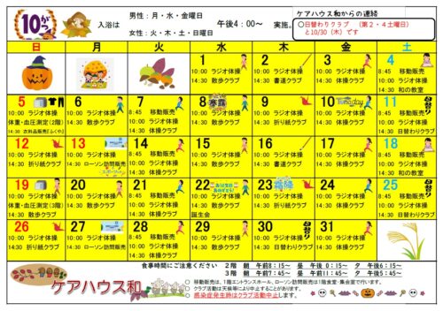 ケアハウス和 10月予定表を掲載します(・ω・) —————ケアハウス和は ◎新潟県新潟市江南区大渕にある軽費老人ホーム(ケアハウス)です。 田園風景に囲まれた、見晴らしの良い環 […]
